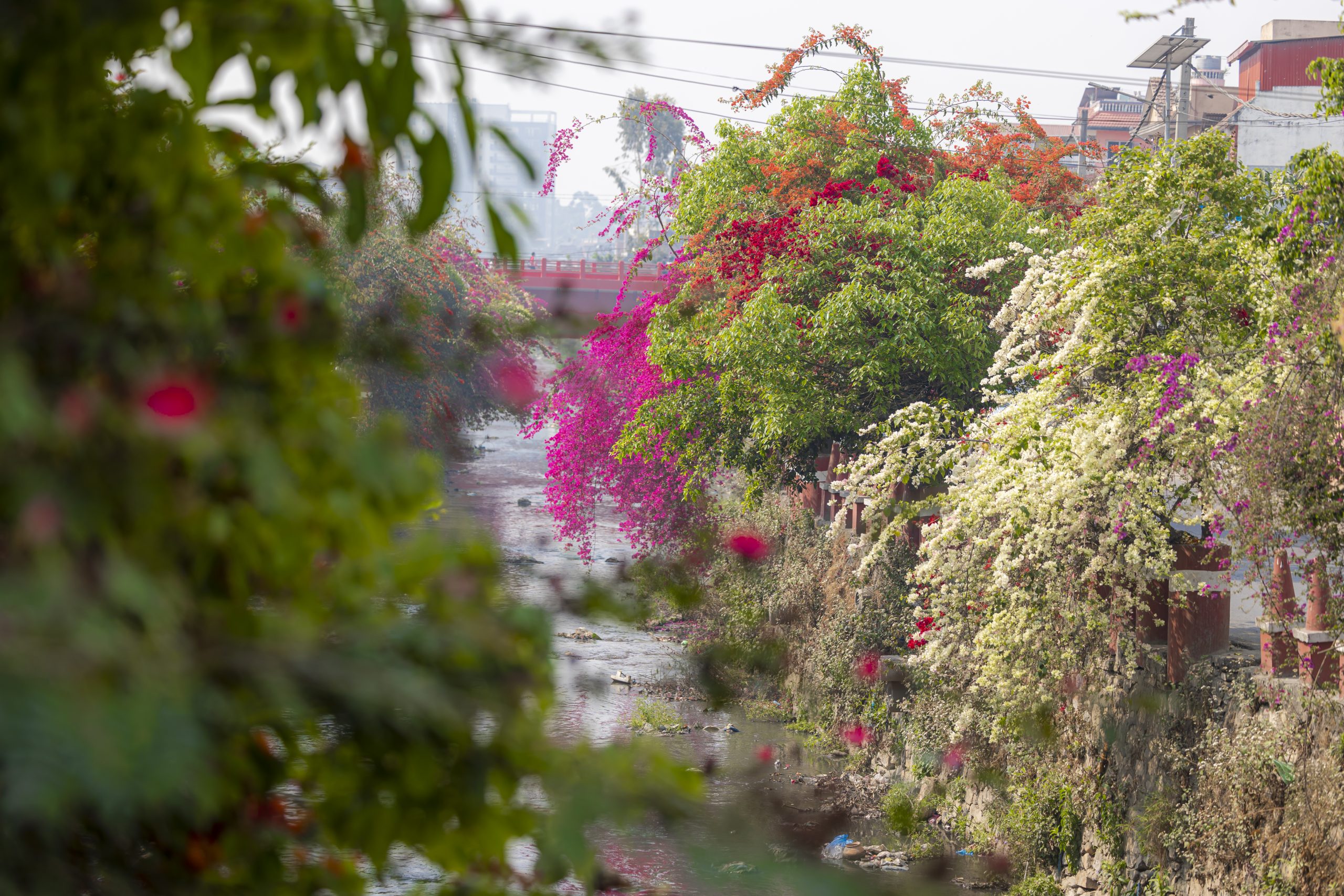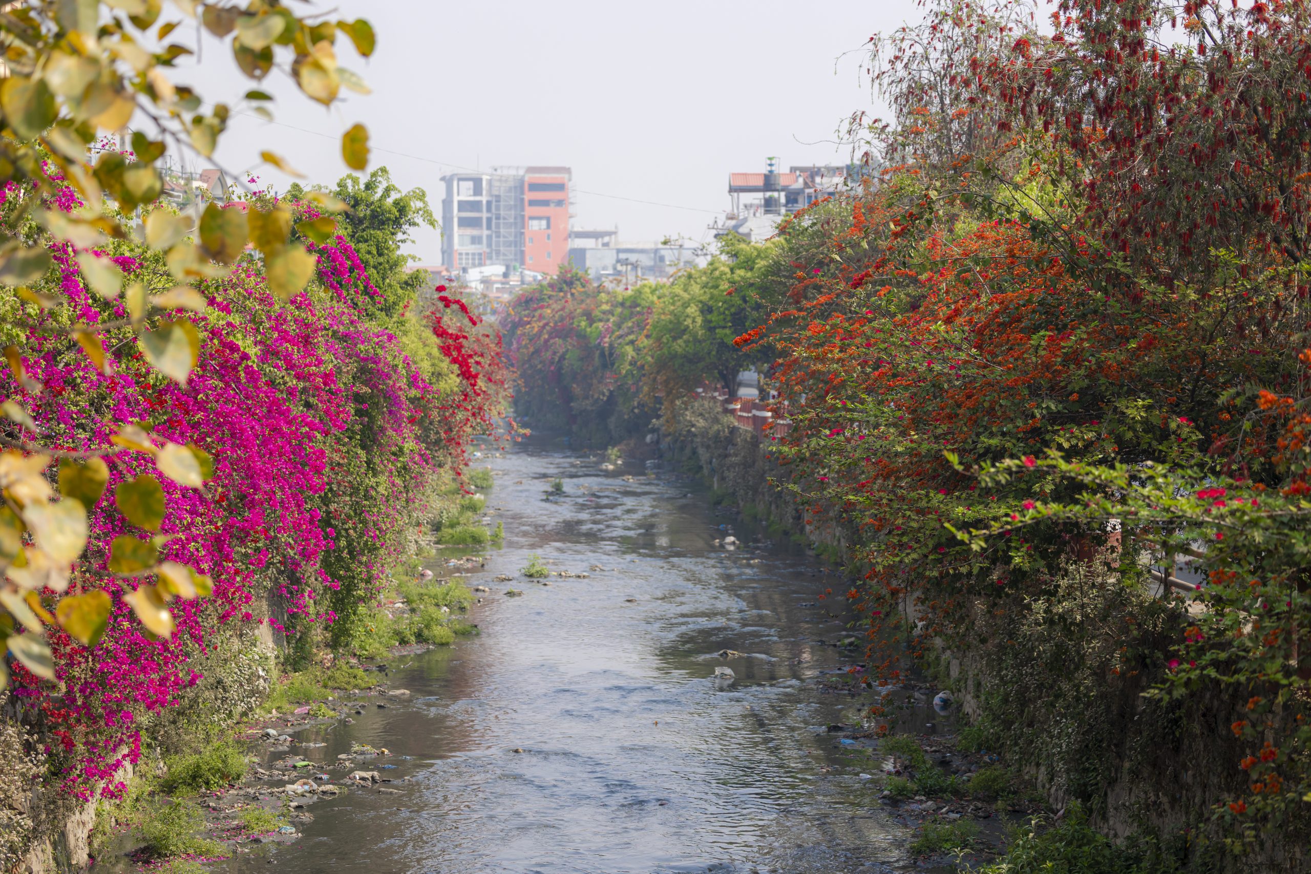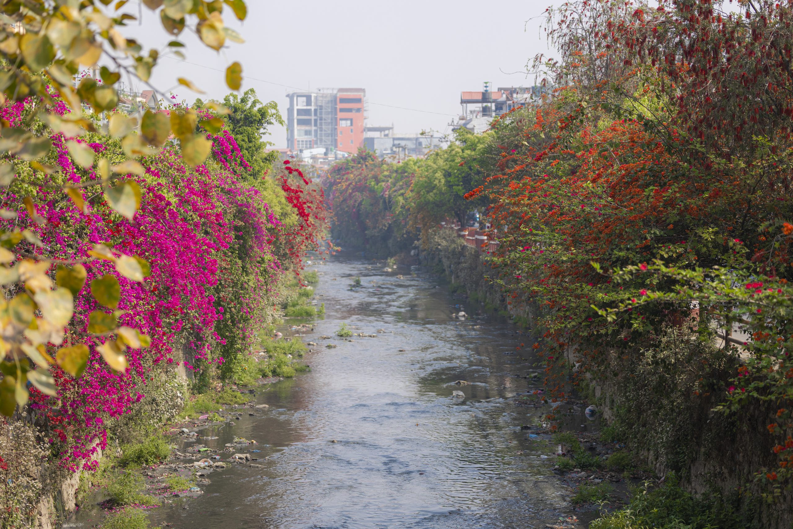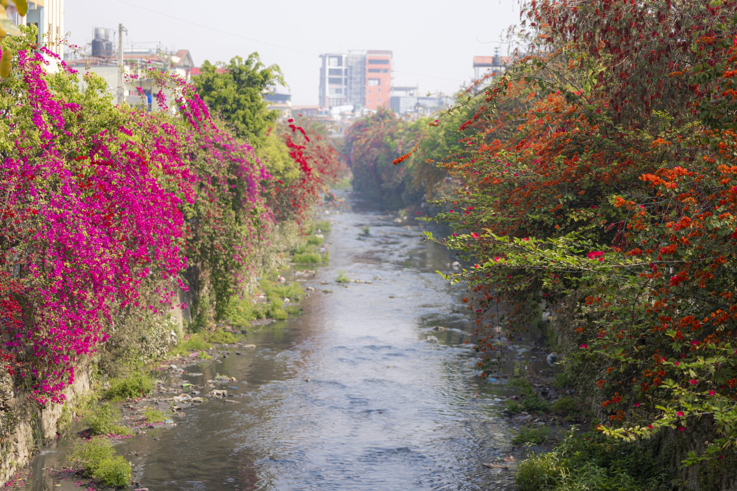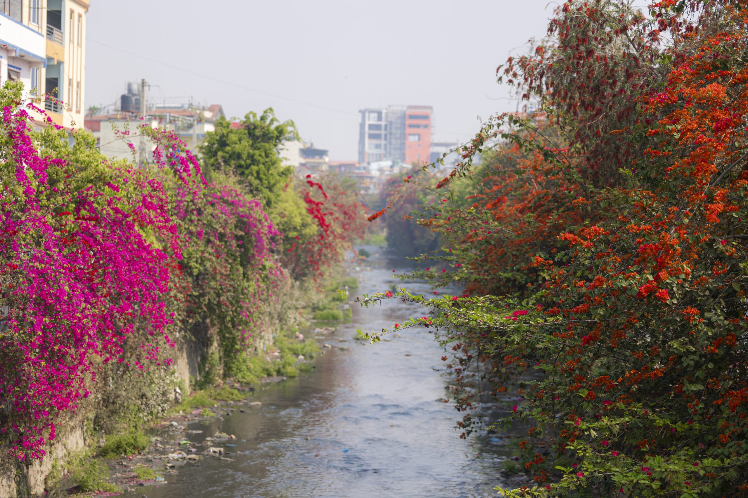 काठमाडौंस्थित धोविखोला नदि किनारामा ढकमक्क फूलेका विभिन्न प्रकारका फूलहरू ।
